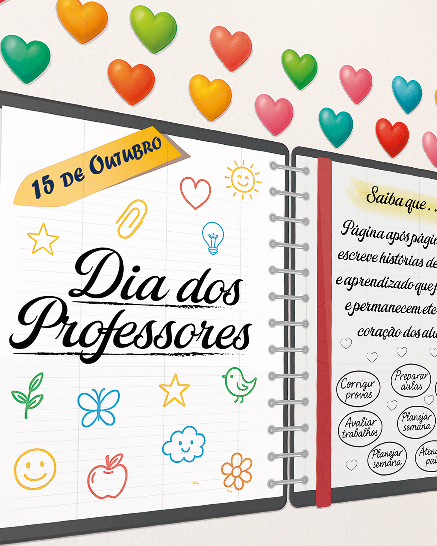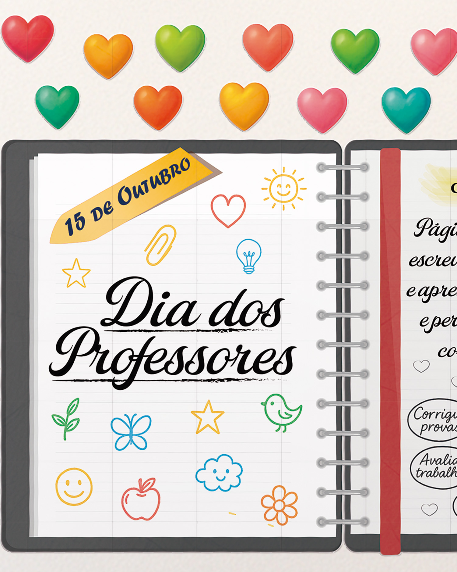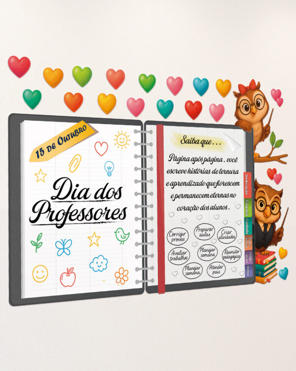 Um painel especial que valoriza e emociona, trazendo o caderno como símbolo da dedicação, ternura e amor em ensinar. Ideal para decorar e inspirar no Dia dos Professores. ✨📖