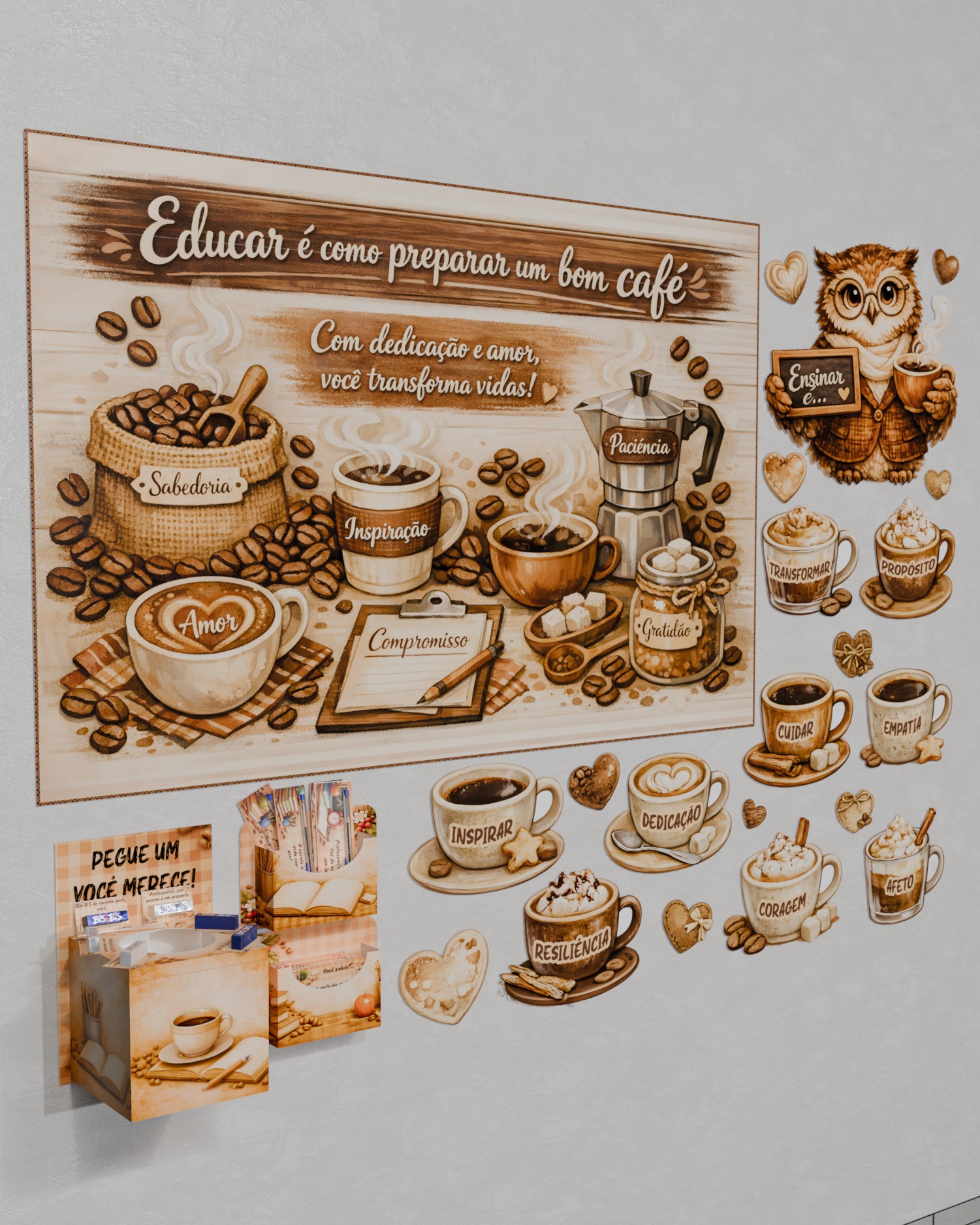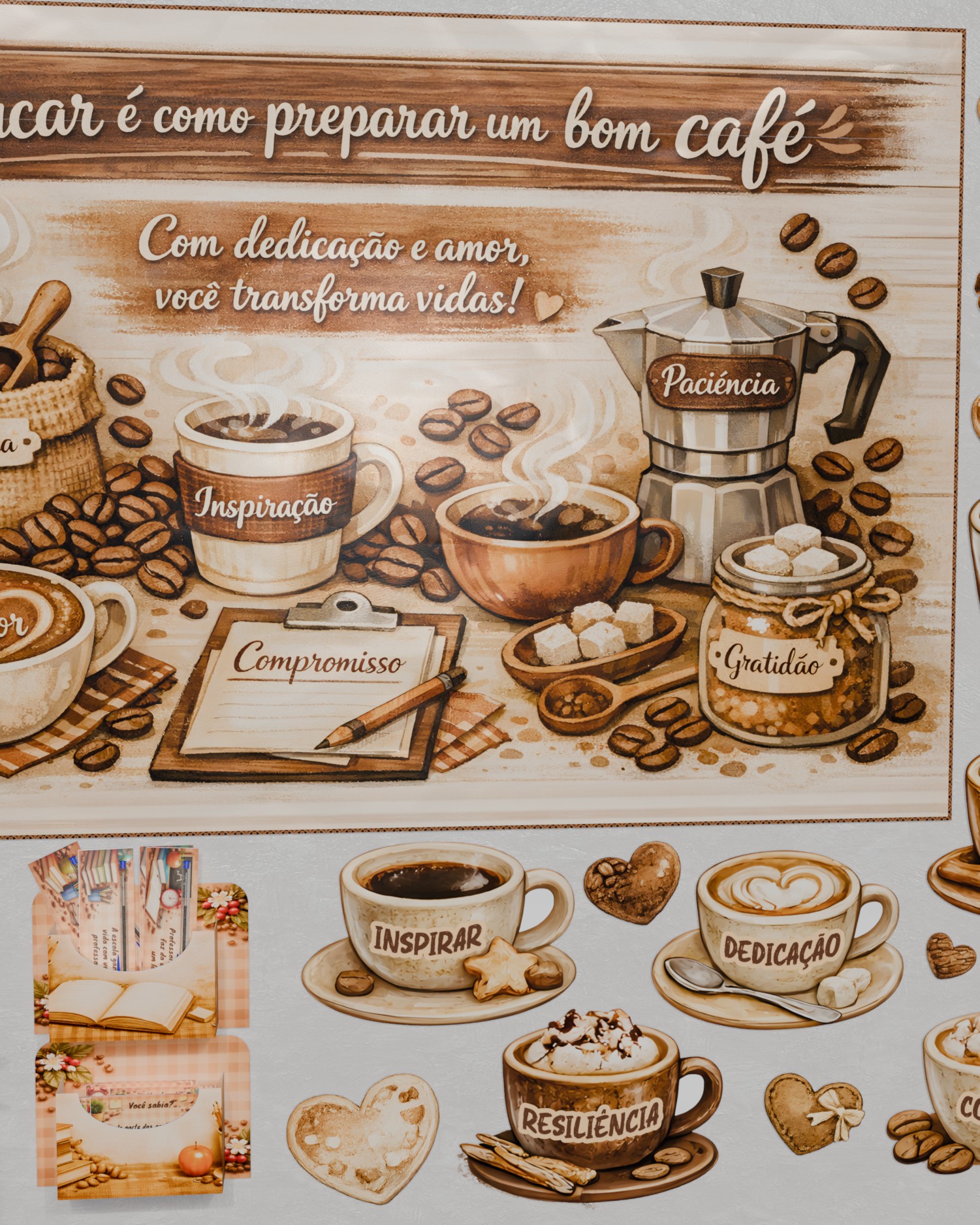 ☕ Painel principal com a frase “Educar é como preparar um bom café”