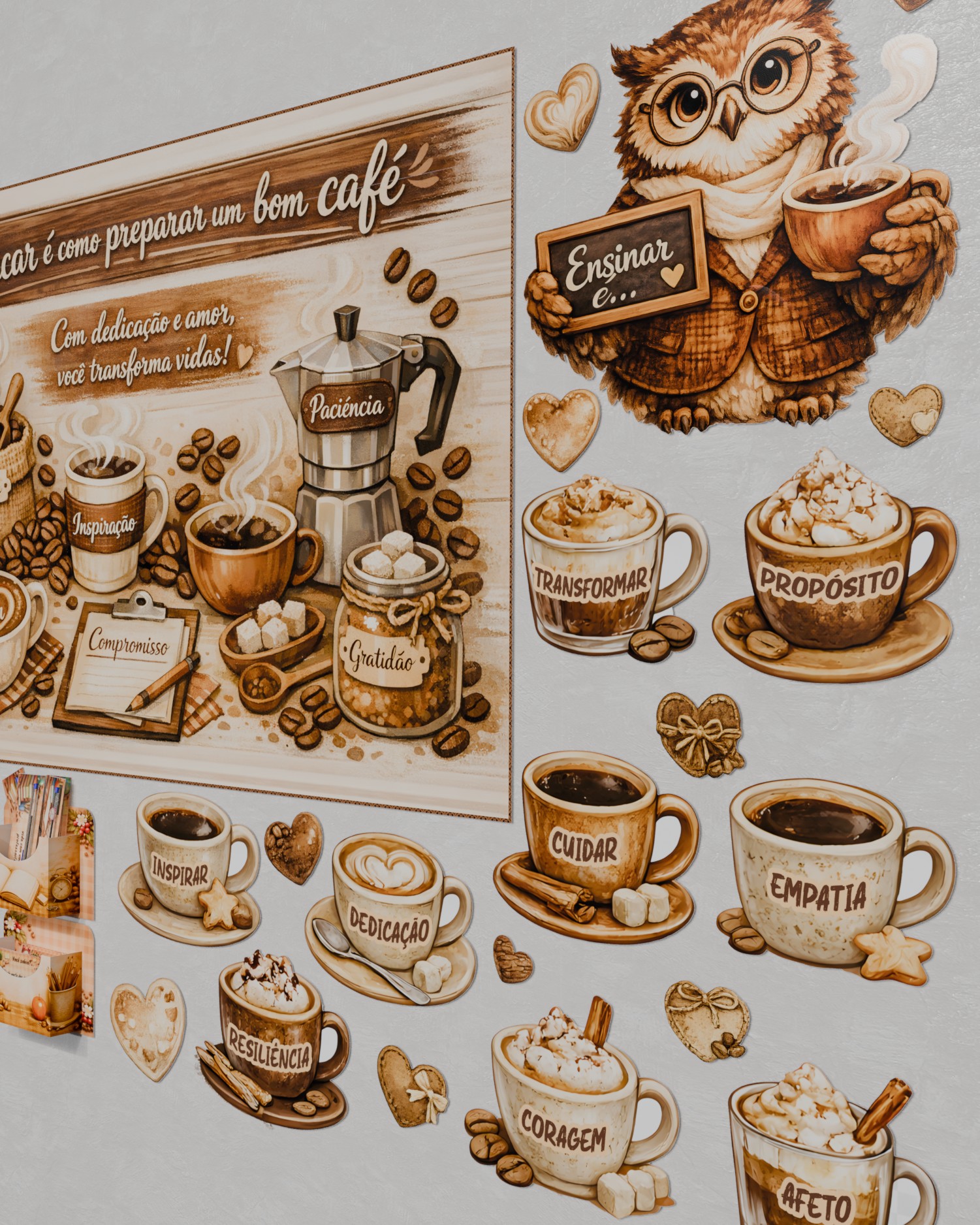 m painel acolhedor, inspirador e cheio de significado, pensado para valorizar o trabalho do professor e transformar o ambiente escolar em um espaço de afeto, motivação e reconhecimento. Ideal para salas de aula, corredores, salas dos professores e espaços pedagógicos.