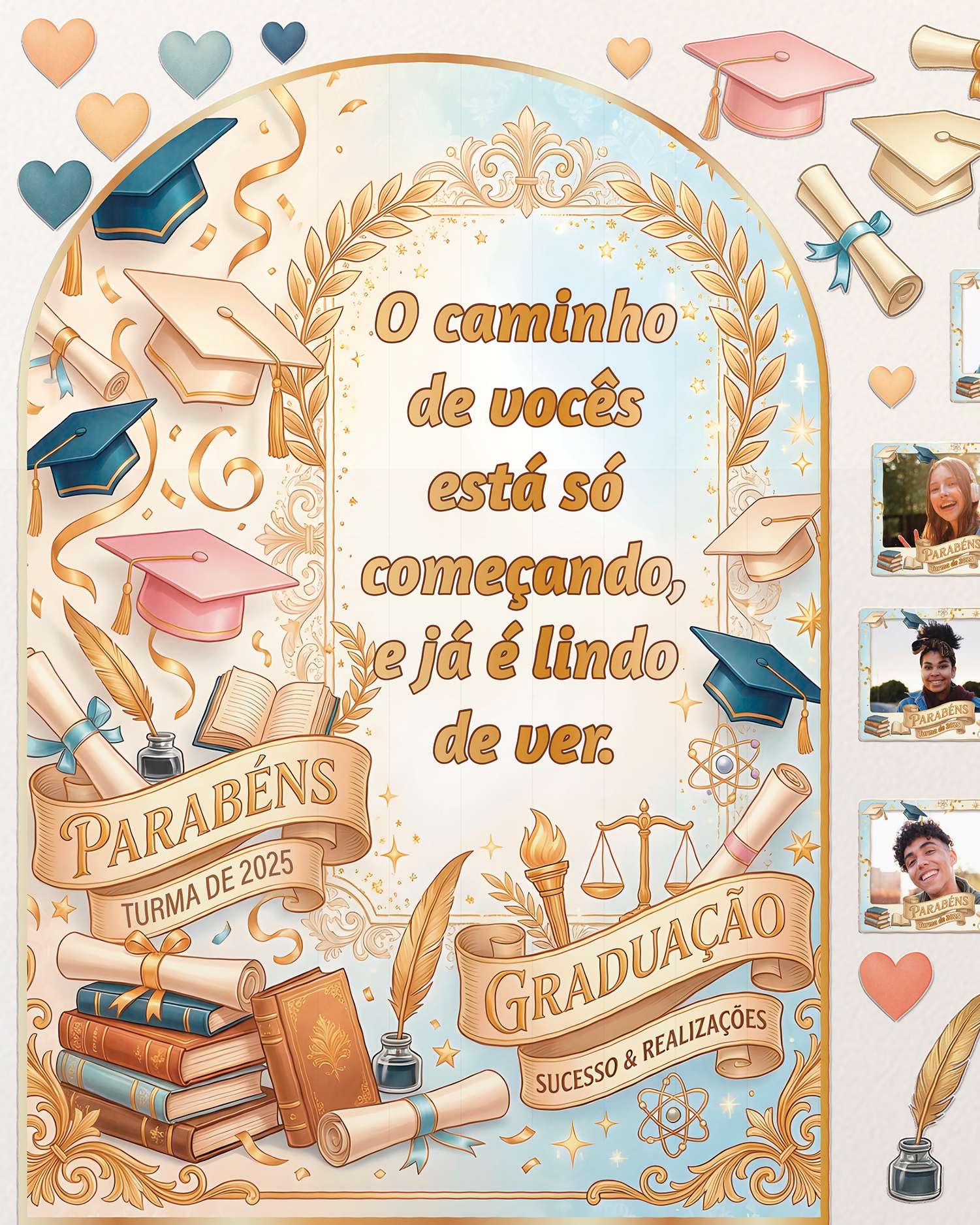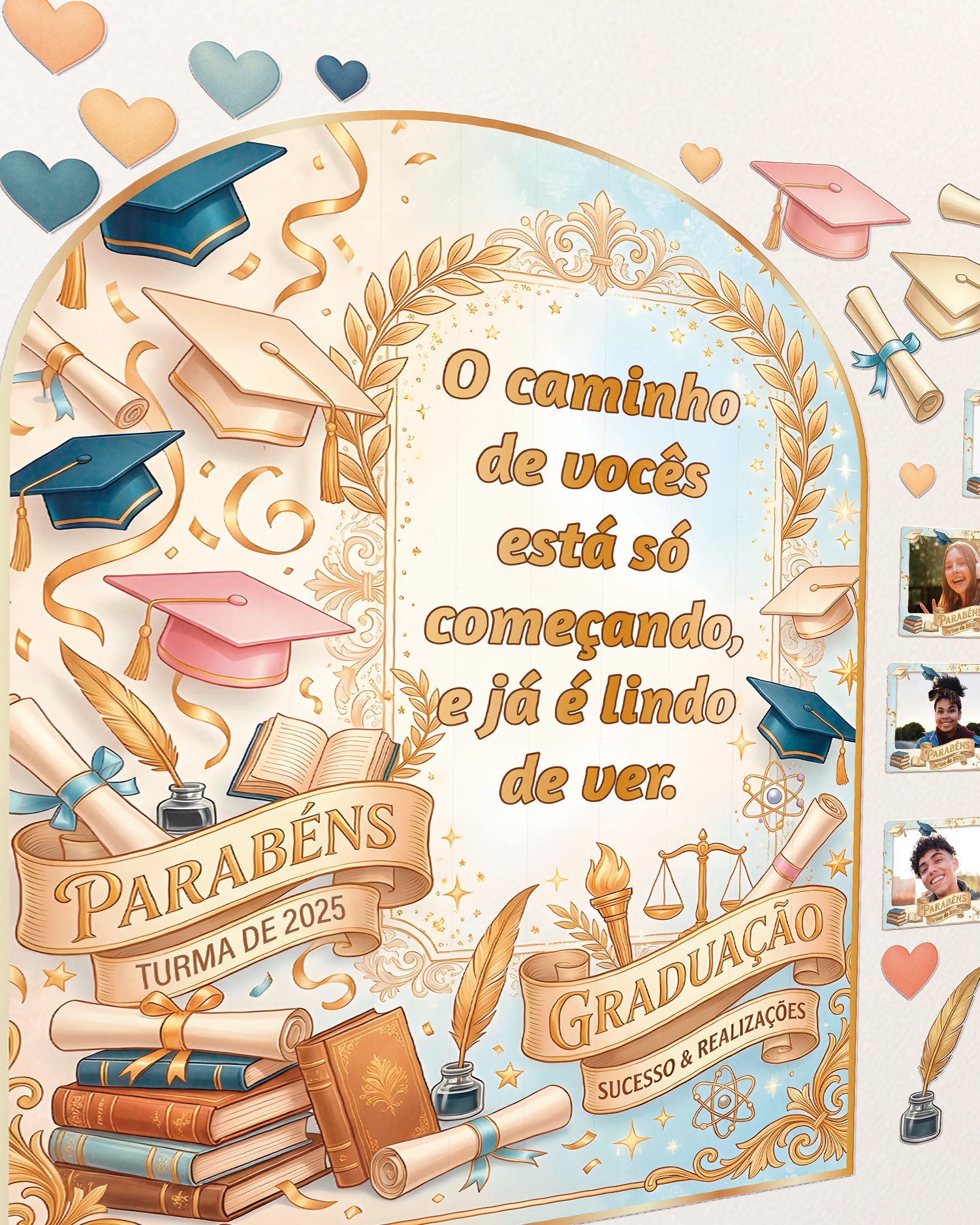 Um painel encantador, delicado e cheio de significado para celebrar a conquista dos formandos!