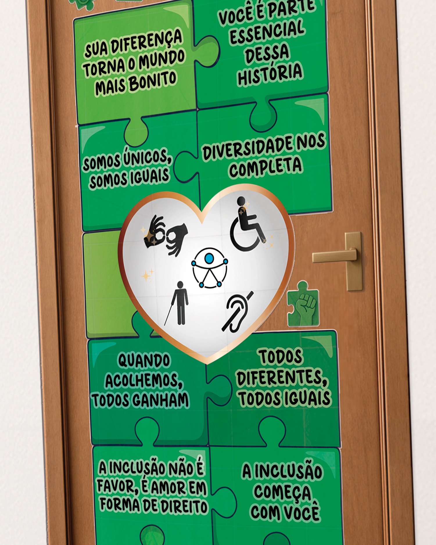 💚 Peças de quebra-cabeça com símbolos da inclusão e acessibilidade