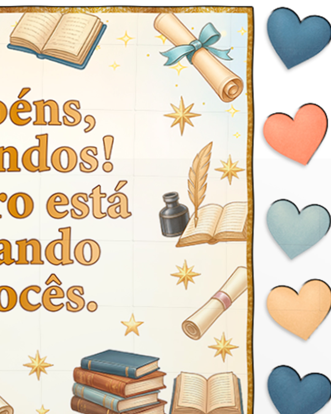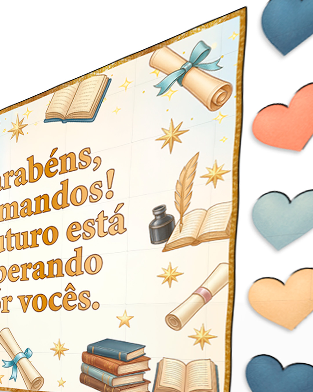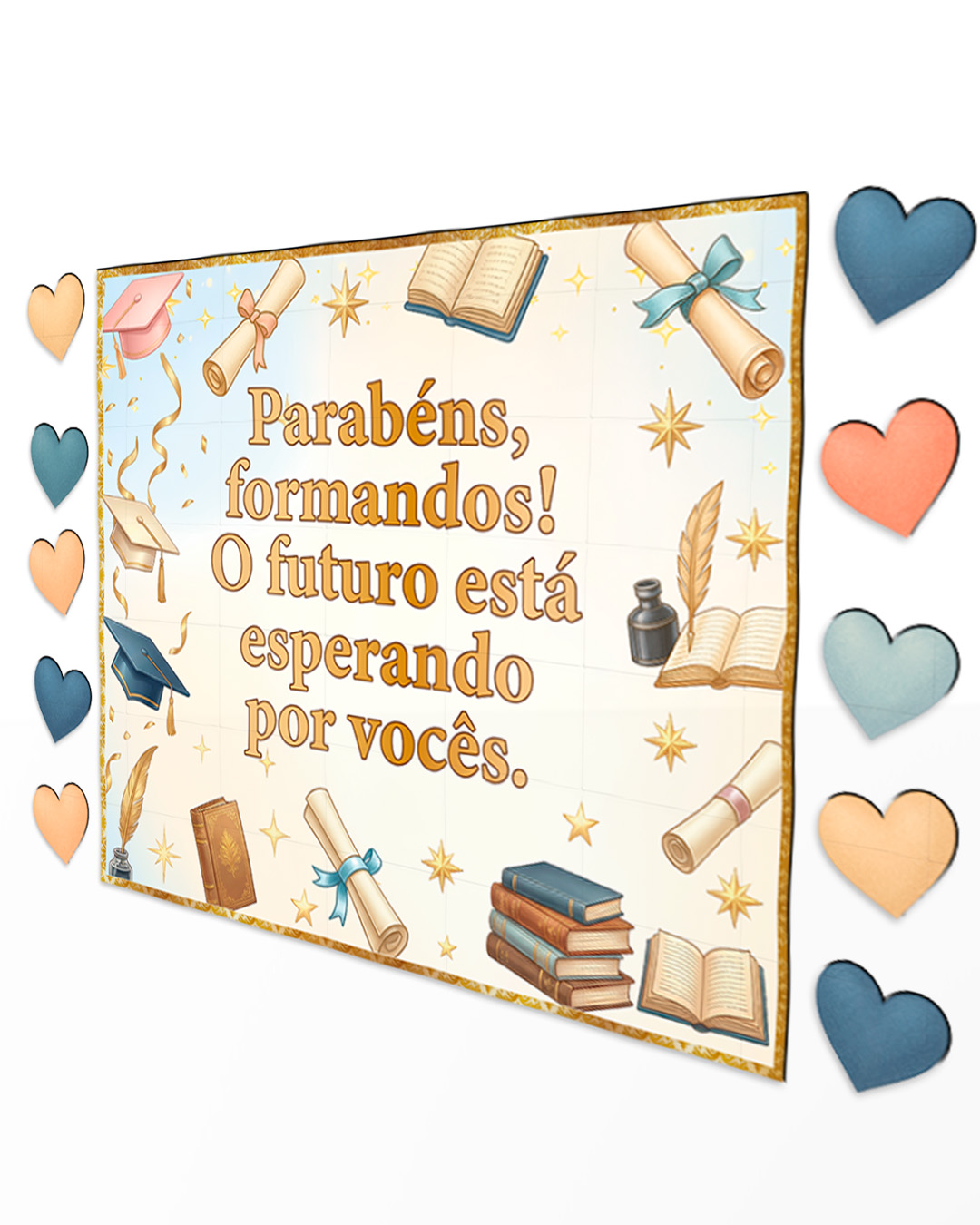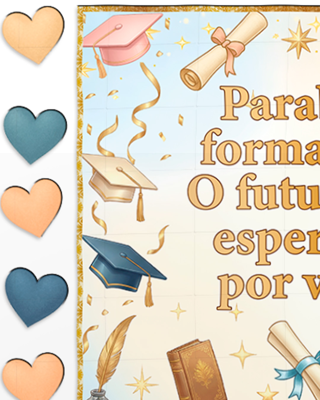 Perfeito para murais, eventos, sessões de fotos e celebrações do encerramento do ano letivo. 🌟