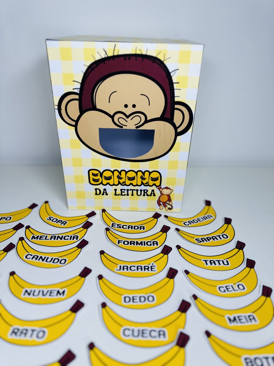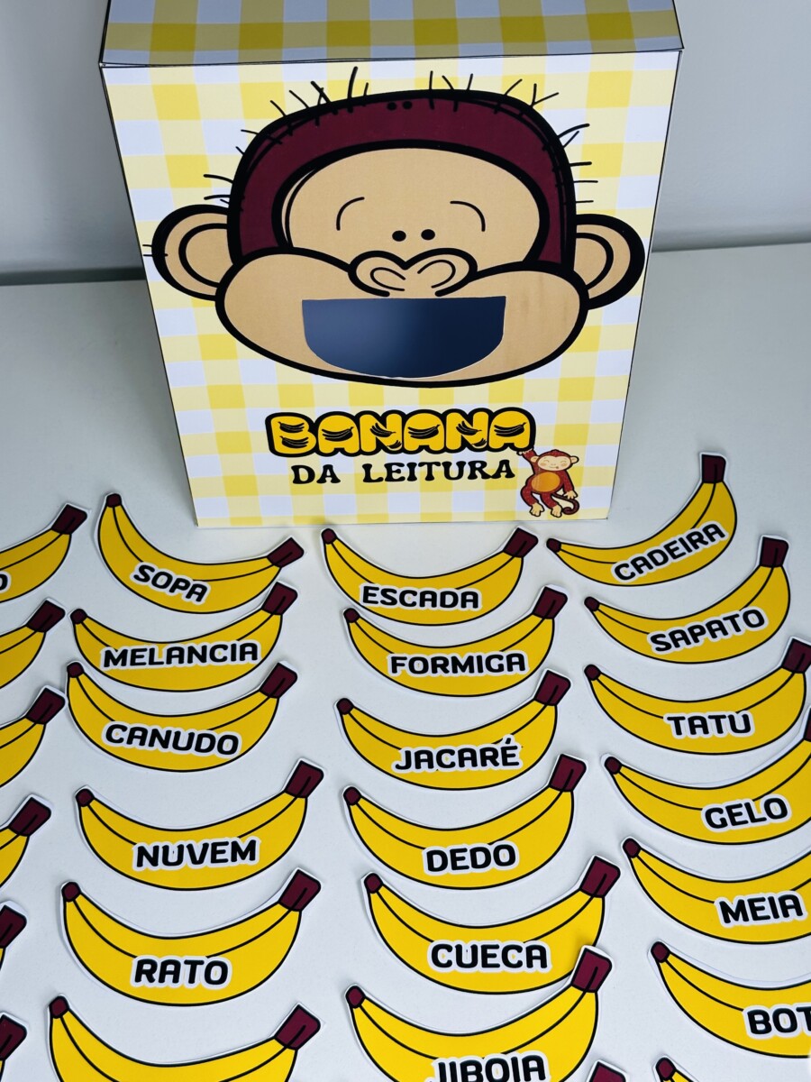 🙊70 fichas em formato de bananinha com palavras variadas, sendo: monossílaba, dissílaba, trissílaba e polissílaba