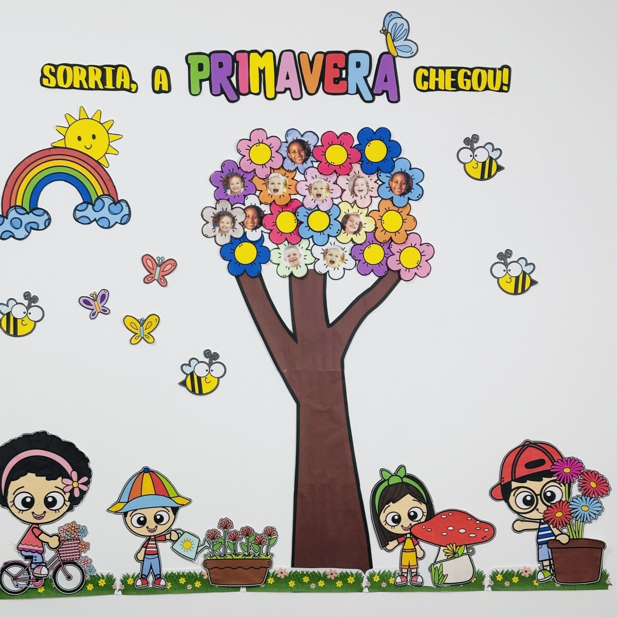 🌸 Painel lindo e colorido para colocar as fotos dos seus alunos, podendo utilizar as florzinhas já coloridas ou pedir para a criança colorir.
