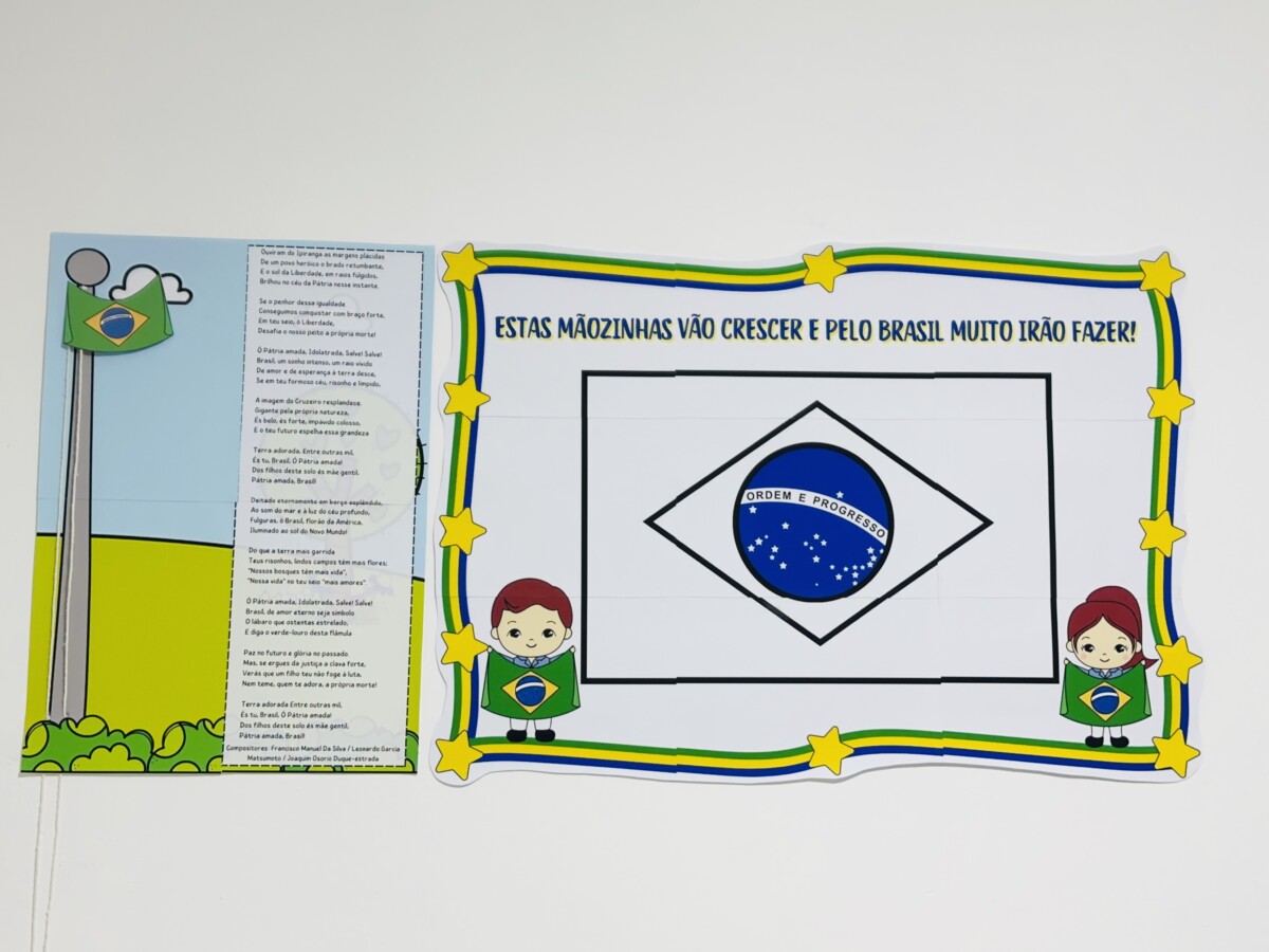 💙 Cartaz interativo para simular o hasteamento da bandeira e cantar o Hino Nacional 🎶🎤