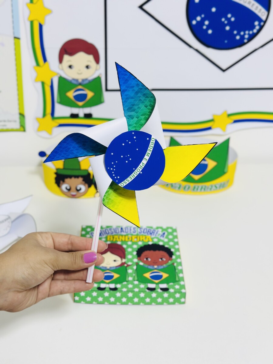 💛 2 modelos de cata-vento, um nas cores do Brasil e outro em preto e branco para as crianças pintarem e personalizarem 🎨🌟