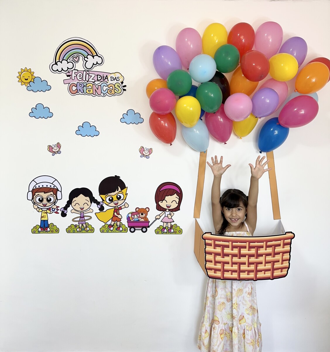 👧🏻No arquivo contém um letreiro escrito “Feliz Dia das Crianças”;